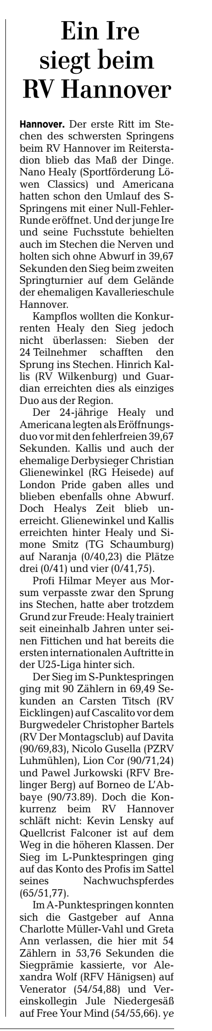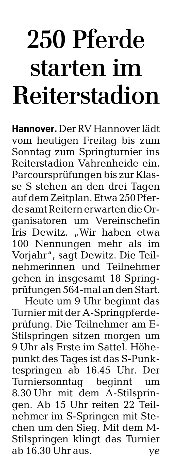 Meldungen über den Reiterverein Hannover in Zeitungen / Zeitschriften können hier angesehen werden: